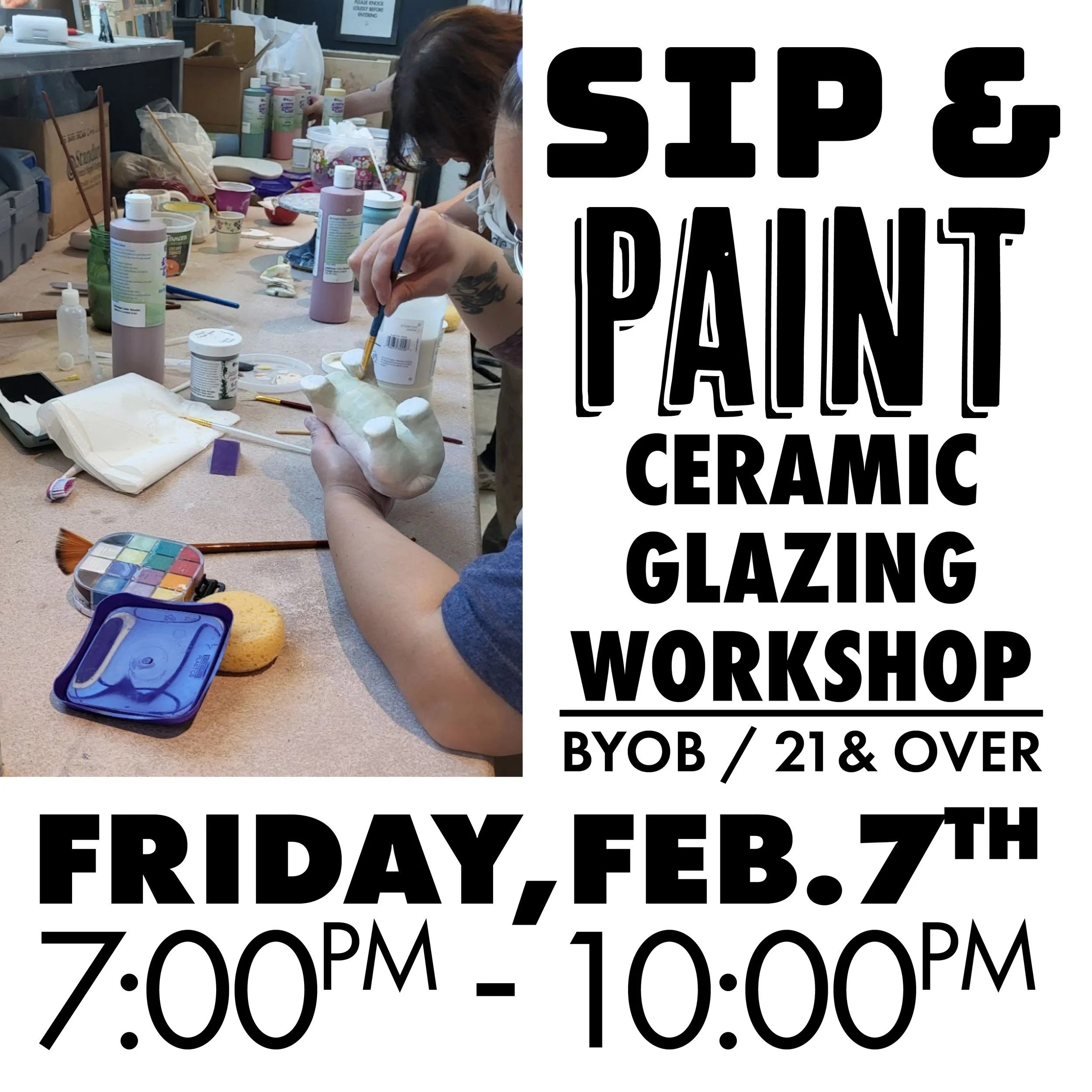 Relax and get creative at our Friday night Sip and Paint ceramic glazing class for ages 21 and up! Enjoy provided beer, wine, or bring your own favorite beverage while exploring your artistic side. We’ll supply a variety of ceramic objects, such as plates, for you to personalize with vibrant glazes. Whether you’re a beginner or experienced, this laid-back class is the perfect way to unwind and have fun!